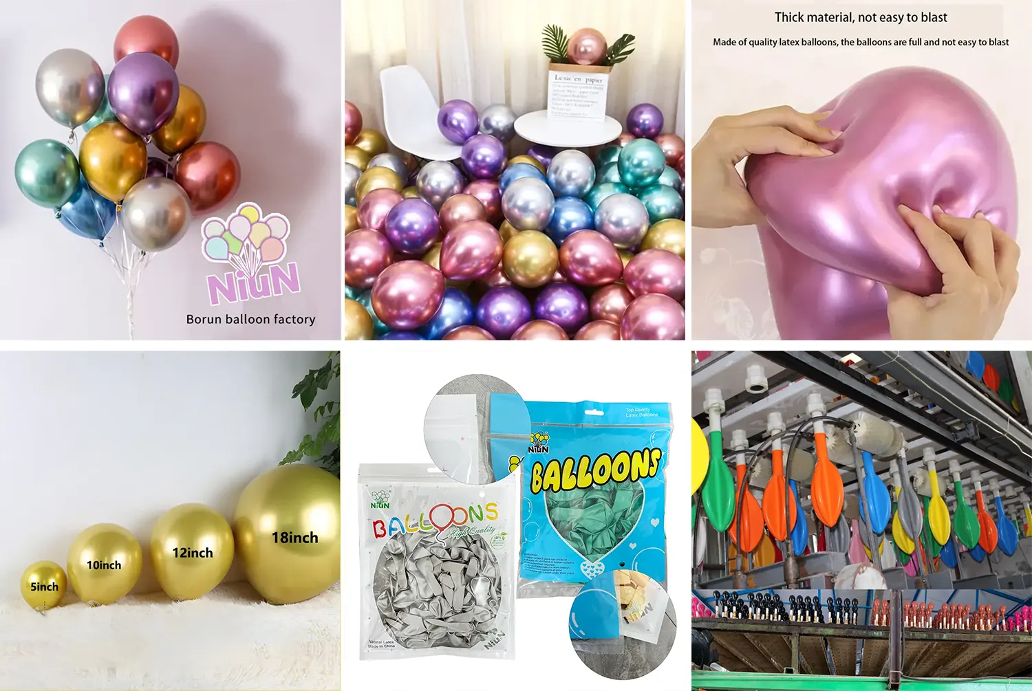সমৃদ্ধ পণ্য: 12 ইঞ্চি ক্রোম বেলুনগুলি ছাড়াও, বোরুন বেলুন কারখানাটি ল্যাটেক্স বেলুনগুলি, কাস্টম প্রিন্টেড লোগো বেলুনগুলি, অ্যালুমিনিয়াম ফয়েল বেলুনগুলি, বেলুন সজ্জা সেট ইত্যাদি সহ বিস্তৃত বেলুন পণ্য সরবরাহ করে এবং বিভিন্ন আকার যেমন আপনার 5/12/18/36 ইঞ্চি covering েকে রাখতে পারে যা আপনার ব্যবসায়কে শেষ করতে পারে।