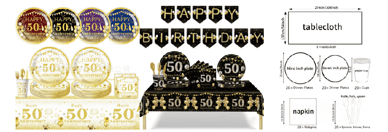 কাগজের জন্মদিনের টপার: কেক সজ্জার মূল আইটেম হিসাবে, মূল কার্ডটি মূল হিসাবে "শুভ জন্মদিন টু 50 বছর বয়সী" শব্দগুলি নেয় এবং আতশবাজি, তারা, জন্মদিনের টুপি এবং অন্যান্য আকারের সাথে মূল কেকের সজ্জার সাথে মেলে। সাপোর্টিং বৃত্তাকার "50", শুভ মেঘ, মুকুট এবং অন্যান্য মিনি কার্ড, ঘন কার্ডবোর্ড দিয়ে তৈরি এবং শক্ত বাঁশের লাঠি দিয়ে মেলে, সূক্ষ্ম বিবরণ সহ, কাপ কেক এবং ডেজার্ট টেবিল দিয়ে সজ্জিত করা যেতে পারে।
