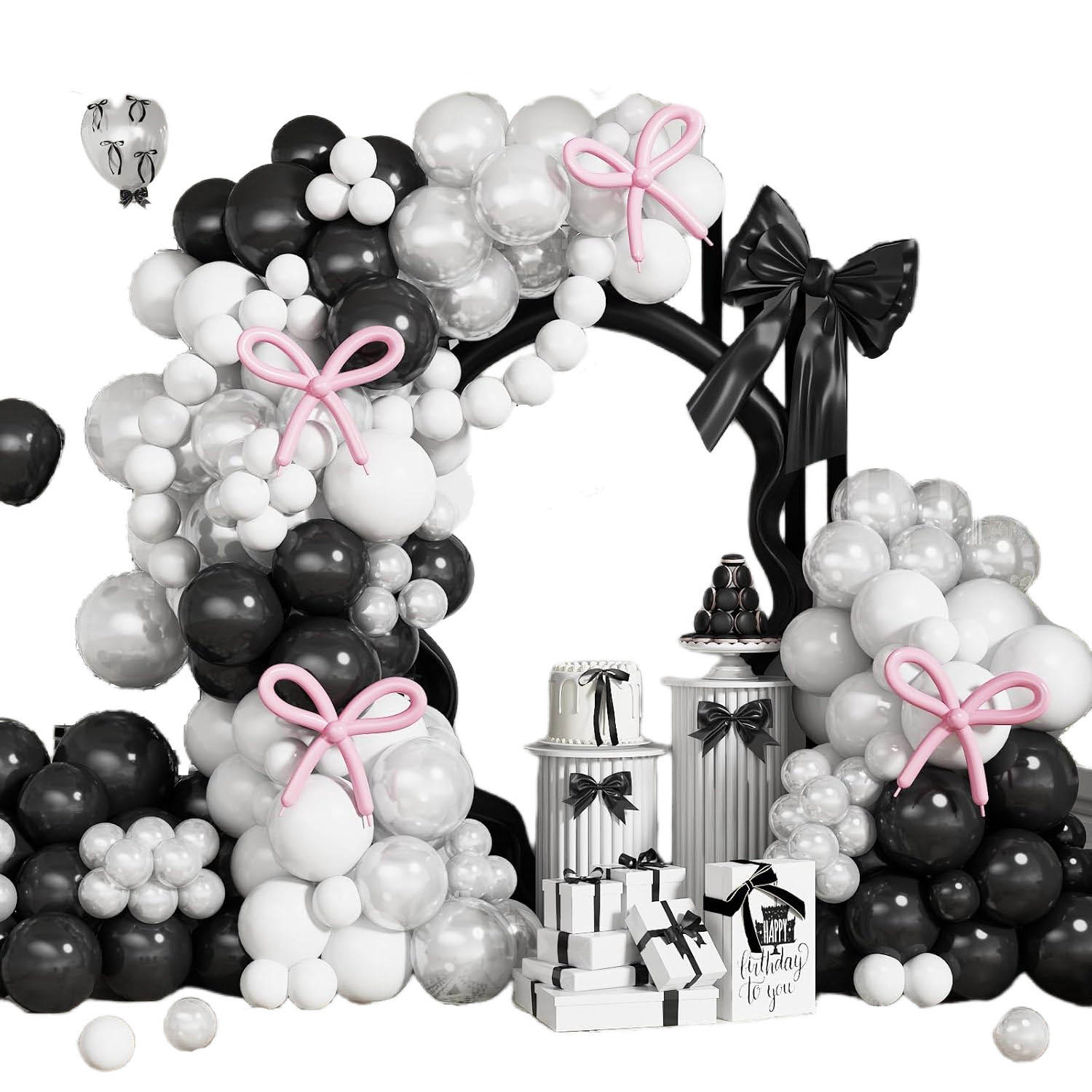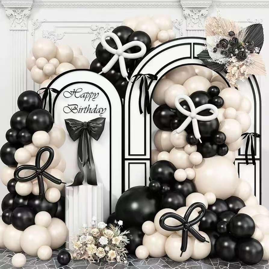 এই বো বেলুন আর্চ গারল্যান্ড বর্তমানে বিভিন্ন বেলুন রঙে উপলব্ধ। নতুন সাদা এবং কালো বেলুন আর্চ গারল্যান্ড গ্রাহকদের মধ্যে একটি জনপ্রিয় পছন্দ, কারণ এটি সর্বাধিক জনপ্রিয় রঙ। সাদা এবং কালো বেলুন পুষ্পস্তবক খিলান একটি শুভ জন্মদিনের পটভূমির সাথে সুন্দরভাবে জুড়ি সেট করে। ধনুকের অ্যাকসেন্টগুলি আপনার পার্টিতে স্পার্কল এবং কবজির একটি স্পর্শ যুক্ত করে সামগ্রিক জন্মদিনের পার্টির বেলুন আর্চ সেটটি বাড়িয়ে তোলে।
