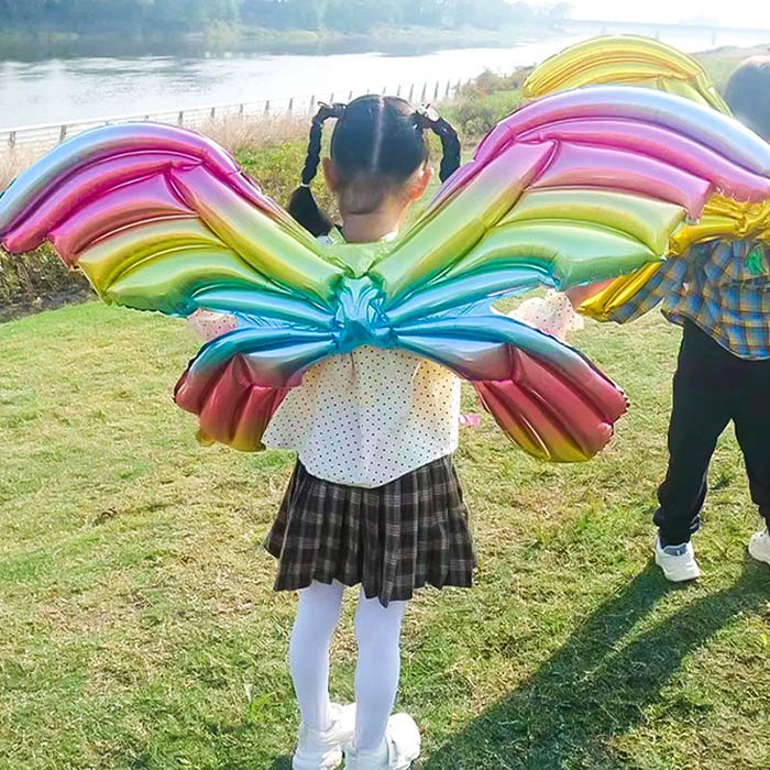 একটি গতিশীল ভিজ্যুয়াল এফেক্ট তৈরি করা, ডানাগুলি একটি বিশেষ নকশা এবং মাধ্যাকর্ষণ সামঞ্জস্যের কেন্দ্রের মাধ্যমে কিছুটা কাত হয়ে থাকে, একটি প্রজাপতি ফ্লাইটিং লো ওভারহেডের মায়া তৈরি করে। স্ফীত হয়ে গেলে, তারা পাশের দিকে ঝাঁকুনিতে দেখা যাচ্ছে। কিছু বেলুন ডিজাইনে উইং প্রান্তগুলি বরাবর চকচকে এবং সিকুইনগুলিও রয়েছে। পরিবেষ্টিত আলোতে, বেলুনগুলি আরও গতিশীল প্রদর্শিত হয়, যে কোনও জায়গাতে একটি প্রাণবন্ত স্পর্শ যুক্ত করে।