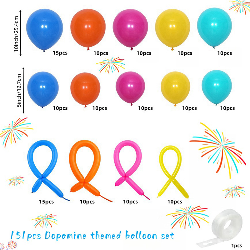 মোট 151pcs ডোপামিন থিমযুক্ত রঙিন বেলুন আর্চ কিট।