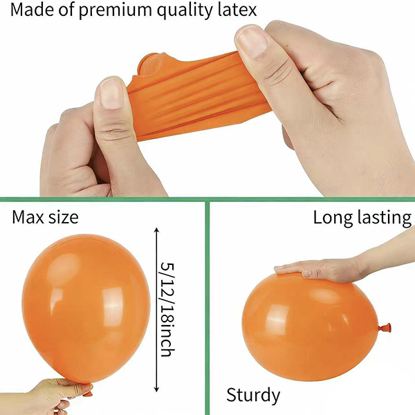 অ-বিষাক্ত এবং নিরাপদ, এগুলি হিলিয়াম এবং বায়ু ভরাট উভয়ের জন্যই আদর্শ, এটি সমস্ত ইভেন্টের জন্য তাদের দুর্দান্ত করে তোলে। একবার স্ফীত হয়ে গেলে, বেলুনটি একটি বর্ধিত সময়ের জন্য তাদের আকৃতি এবং উচ্ছ্বাস বজায় রাখে, যাতে আপনার সাজসজ্জা পুরো উদযাপন জুড়ে প্রাণবন্ত থাকে।