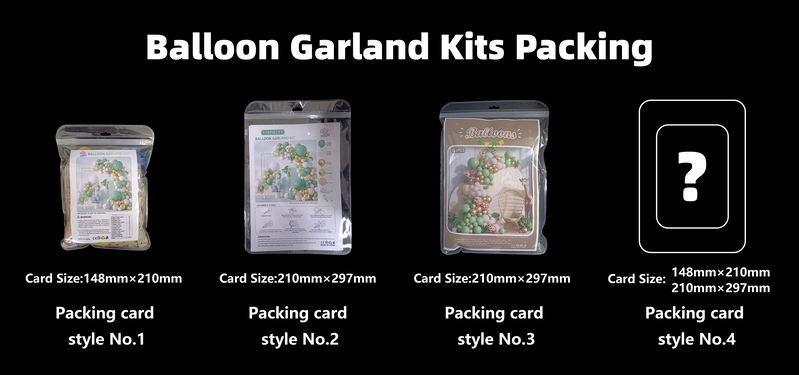 বেলুন খিলান কিট প্যাকিংয়ের জন্য, এটি আপনার বিক্রয় উপলক্ষের উপর নির্ভর করে। আপনি যদি নীচের প্যাকিং শৈলী নং 1 অনলাইনে এটি বিক্রি করেন এবং ভ্যাকুয়াম আপনার জন্য ভাল হবে, এটি আপনাকে শিপিং স্পেস এবং শিপিং খরচ বাঁচাতে সাহায্য করতে পারে। কিন্তু আপনি যদি দোকানে কাস্টমাইজ করা রঙিন বেলুন আর্চ কিট বিক্রি করেন, তাহলে নিচের প্যাকিং স্টাইল নং 2 বা আরও বড় আকারের বড় প্যাকিং ব্যাগটি আপনার জন্য উপযুক্ত হবে, বিভিন্ন শৈলীর রঙিন বেলুন আর্চ কিট কার্ড সহ বড় প্যাকিং ব্যাগ আপনার গ্রাহকদের দেখানোর জন্য পণ্যগুলিকে আরও ভালভাবে দেখাতে পারে। কিন্তু আপনি যদি কাস্টম আপনার নিজস্ব উপায় প্যাকিং শৈলী চান, এটা ঠিক আছে, আপনি আমাদের আপনার প্রয়োজনীয়তা বলতে পারেন, আমাদের ডিজাইনার আপনার জন্য এটি করবে। অথবা আপনি নকশা তৈরি করুন এবং আমাদের চূড়ান্ত নকশা পাঠান, আমাদের কর্মীরা আপনার প্রয়োজনীয়তার ভিত্তিতে উচ্চ-মানের রঙিন বেলুন আর্চ কিটস সজ্জা করবে।