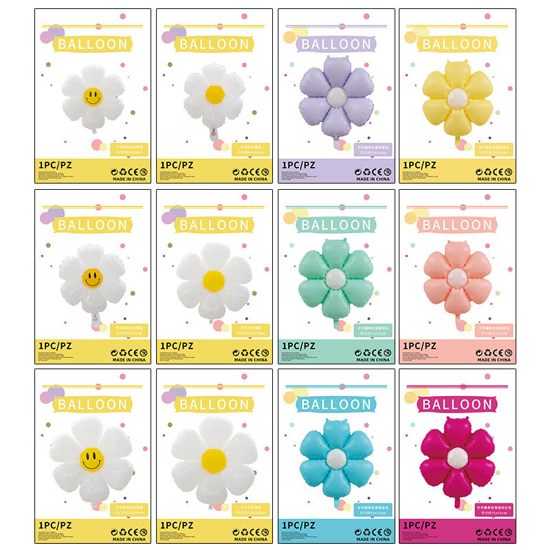 বাল্ক প্যাকেজিংয়ে 50 টির একটি প্যাক অন্তর্ভুক্ত রয়েছে, যার প্রতিটিতে একটি সাদা ডেইজি আকারের ফয়েল বেলুন এবং স্ফীত করার জন্য একটি খড় রয়েছে, এটি খুব সুবিধাজনক করে তোলে।