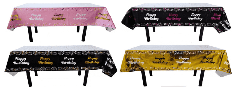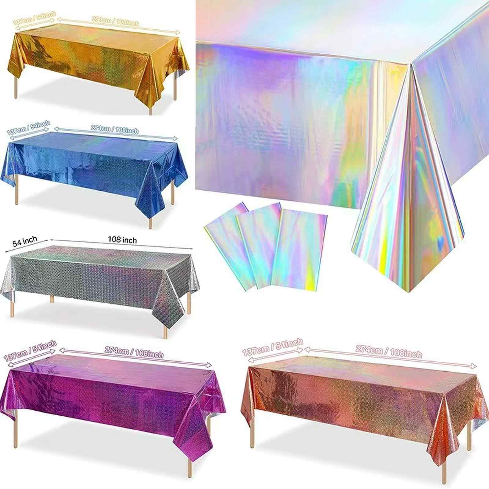 রংধনু রঙ, কার্টুন প্রাণী এবং কেকের প্যাটার্ন সহ ফয়েল টেবিলক্লথ, বাচ্চাদের জন্মদিনের পার্টির জন্য উপযুক্ত; সোনা, রৌপ্য, তারা এবং চিঠির প্যাটার্ন সহ লেজারের রঙ, প্রাপ্তবয়স্কদের জন্মদিনের পার্টি, বার্ষিকী উদযাপন, গার্লফ্রেন্ড পার্টি ইত্যাদির জন্য উপযুক্ত, পারিবারিক ডাইনিং টেবিল, হোটেল পার্টি টেবিল, আউটডোর পিকনিক টেবিল এবং অন্যান্য দৃশ্যে সাজানো যেতে পারে।