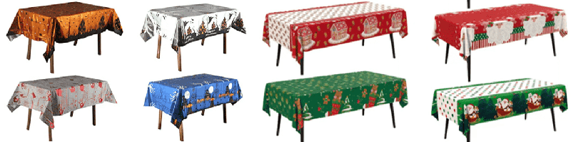 উদাহরণস্বরূপ, ক্রিসমাস থিমের লাল এবং সবুজ রঙের মিল, ক্রিসমাস ট্রি এবং স্নোফ্লেকের প্যাটার্নের সাথে ফয়েল টেবিলক্লথ, কুমড়ো এবং ব্যাট প্যাটার্নের সাথে হ্যালোইন থিমের কালো এবং কমলা রঙের ম্যাচিং এবং ভাগ্যবান অক্ষর এবং লণ্ঠনের প্যাটার্ন সহ বসন্ত উত্সবের থিমের লাল এবং সোনার রঙের ম্যাচিং ডেস্কটপ, ছুটির দিন এবং রেস্তোরাঁর অন্যান্য স্থানের সাজসজ্জার জন্য ব্যবহার করা যেতে পারে।