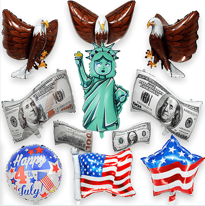 ব্যবহারযোগ্যতা এবং পরিবেশগত সুরক্ষা উভয়ই বিবেচনায় নিয়ে এগুলি বারবার স্ফীত হতে পারে। সাজসজ্জা প্রক্রিয়ায়, আমরা বিভিন্ন বিশেষ ছুটির সাজসজ্জা উপাদান যোগ করেছি। ল্যাটেক্স বেলুনগুলি সূক্ষ্ম তারার স্ট্রাইপ, পাঁচ-পয়েন্টেড স্টার প্যাটার্ন এবং ইংরেজি শব্দ "Happy 4th of July" দিয়ে মুদ্রিত হয়। ফয়েল বেলুনগুলি ক্লাসিক স্বাধীনতা দিবসের আকার তৈরি করতে ব্যবহৃত হয় যেমন ত্রিমাত্রিক তারকা স্ট্রাইপ, টাক ঈগল এবং সংখ্যা "4"। কিছু বেলুন এছাড়াও ফ্ল্যাশ উপাদান যেমন গোল্ড পাউডার এবং সিকুইনস সঙ্গে যোগ করা হয় সজ্জা প্রভাব আরো নজরকাড়া করতে.