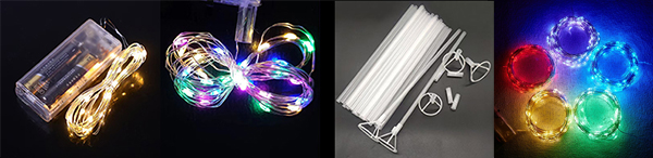এলইডি লাইট স্ট্রিপ, প্লাস্টিক টিউব, বেলুন কাপ, পালক |