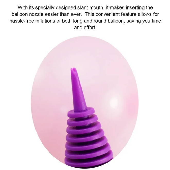আমাদের বেলুন মডেলিং হ্যান্ড পাম্পের জন্য, বোরুন বেলুন কারখানাটি সহজ সন্নিবেশের জন্য একটি বেভেলড অগ্রভাগ ডিজাইন ব্যবহার করে। এটি বেশিরভাগ ল্যাটেক্স এবং ফয়েল বেলুনগুলির সাথে সামঞ্জস্যপূর্ণ। বেলুন পাম্প শীর্ষ এবং নীচে উভয় থেকে বায়ু আঁকায়, বেলুনটিকে দ্বিগুণ দ্রুত স্ফীত করে, সময় এবং প্রচেষ্টা সাশ্রয় করে। এই বোরুননিউন ব্র্যান্ড বেলুন হ্যান্ড পাম্পমুখের দ্বারা বেলুনগুলি স্ফীত করার জন্য শ্বাস-প্রশ্বাসের বিকল্প।