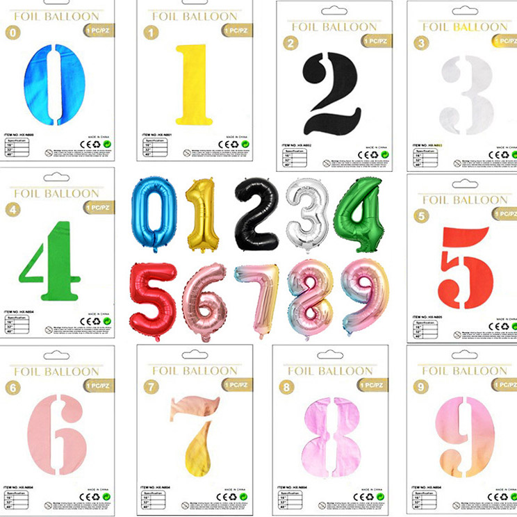 নম্বর ফয়েল বেলুনগুলি: 16 ", 32", এবং 40 "আকারে উপলব্ধ।