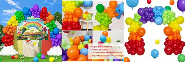 NuN চমত্কাররংধনু-থিমযুক্ত পার্টি সাজসজ্জায় রংধনু বেলুনের সাতটি প্রাণবন্ত রঙ রয়েছে, যা আপনার পার্টিতে রঙের স্পর্শ যোগ করে। আপনার রংধনু-থিমযুক্ত পার্টির জন্য একটি প্রাণবন্ত রংধনু বেলুন খিলান, পটভূমি, কেন্দ্রবিন্দু এবং প্রবেশপথ তৈরি করতে এই রংধনু বেলুন আর্চ কিটটি ব্যবহার করুন।