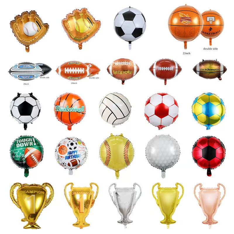 ডিজাইনে ক্রীড়া সরঞ্জামের মডেলিং, বাস্কেটবল, ফুটবল, ডাম্বেল, ট্রফি, ক্রীড়া চিত্রের সিলুয়েট, "উইন", "গোল" এবং "চ্যাম্পিয়ন" এবং অন্যান্য প্রণোদনামূলক চিঠি অন্তর্ভুক্ত রয়েছে। একটি একক বড়-আকারের (18-36 ইঞ্চি) বেলুন জটিল মিলের প্রয়োজন হয় না, এবং যখন কার্যকলাপের কেন্দ্রে বা প্রবেশদ্বারে ঝুলানো হয় তখন এটি ভিজ্যুয়াল ফোকাস হয়ে উঠতে পারে। এটি বিশেষভাবে দৃশ্যের জন্য উপযুক্ত যেমন বড় আকারের ইভেন্টের জন্য উল্লাস, বহিরঙ্গন ক্রীড়া কার্যক্রম এবং ক্যাম্পাস ক্রীড়া গেম, তাত্ক্ষণিকভাবে দৃশ্যের উত্সাহ জাগিয়ে তোলে।