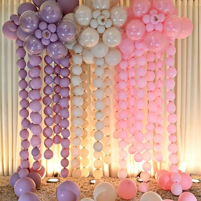 বাণিজ্যিক সাজসজ্জার জন্য উপযুক্ত (যেমন নাইট মার্কেট স্টল এবং পার্টি পরিকল্পনা)। লেজ ডিজাইনটি সময় সাশ্রয় করে বেলুনগুলির দ্রুত স্ট্রিংিংয়ের অনুমতি দেয়। বাণিজ্যিক পারফরম্যান্সের জন্য, আমরা 10 ইঞ্চি বেলুনটি বেছে নেওয়ার পরামর্শ দিই। এর স্থিতিস্থাপকতা এবং নমনীয়তা এটি মাছ এবং ড্রাগনের মতো জটিল আকার তৈরির জন্য আদর্শ করে তোলে এবং এটি ফেটে যাওয়ার সম্ভাবনাও কম। স্ফীত হওয়ার আগে, ক্ষতির জন্য বেলুনটি পরীক্ষা করুন। ওভারফিলিং (প্রায় 80%) এড়িয়ে চলুন এবং সরাসরি সূর্যের আলো এড়িয়ে চলুন এবং এর ভাসমান সময়টি দীর্ঘায়িত করার জন্য তীক্ষ্ণ বস্তুর সাথে যোগাযোগ করুন। ল্যাটেক্স বার্ধক্য প্রতিরোধের জন্য একটি সিল করা, শুকনো, শীতল জায়গায় অব্যবহৃত বেলুনগুলি সংরক্ষণ করুন। পরবর্তী ব্যবহারের আগে স্থিতিস্থাপকতা পরীক্ষা করুন।