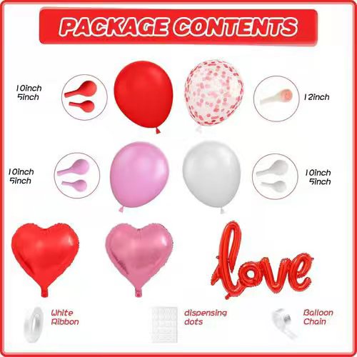 ভ্যালেন্টাইনস ডে বেলুন আর্চ কিট আমাদের উৎসবের থিমযুক্ত বেলুন কিটগুলির মধ্যে একটি। ভ্যালেন্টাইন্স ডে সাধারণত প্রতি বছর 14 ফেব্রুয়ারিতে পড়ে। প্রেম এবং রোম্যান্সের সাথে, এই উত্সবটি সারা বিশ্বে খুব জনপ্রিয়। এইভাবে, এই বেলুন কিট আমাদের সেরা বিক্রি হয়. এটি উদযাপন, বিবাহ বা সমকক্ষের জন্যই হোক না কেন। এটি একটি ভাল পছন্দ হবে.